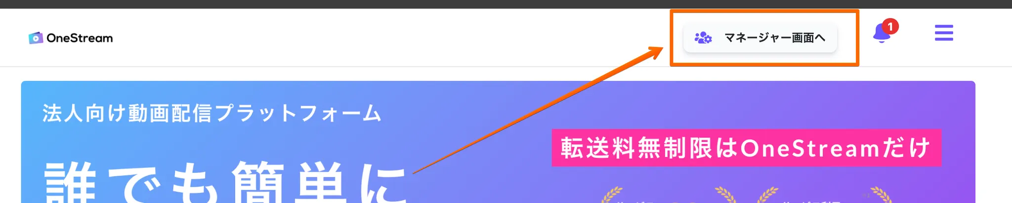 ①マネージャーはログイン後、上部の「マネージャー画面へ」を押下