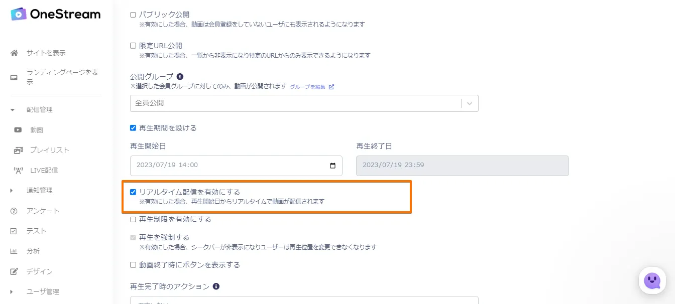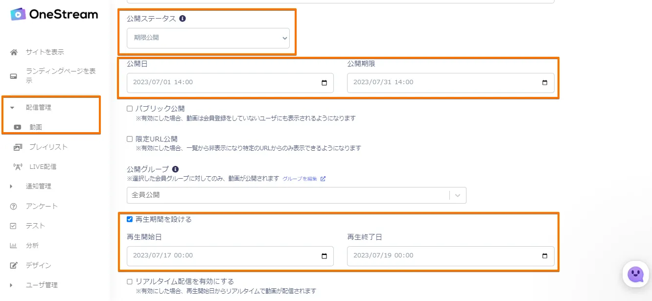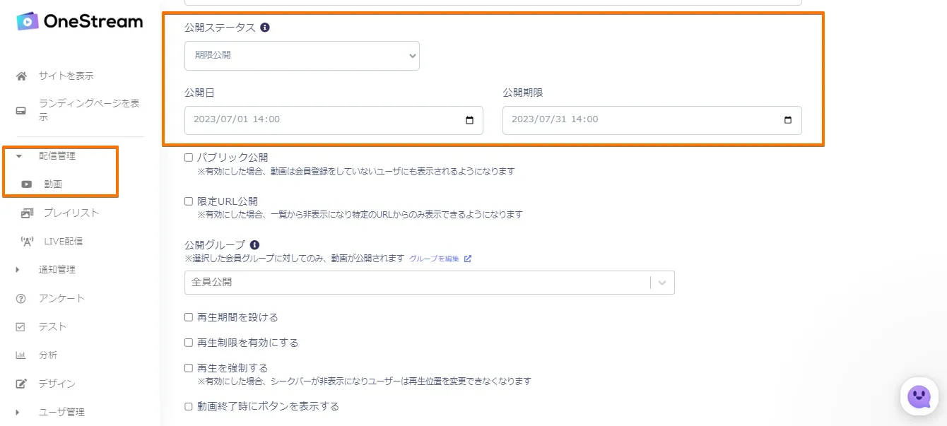 上記の画像は7月1日14:00~7月31日 14:00までしか動画が再生できない設定です。