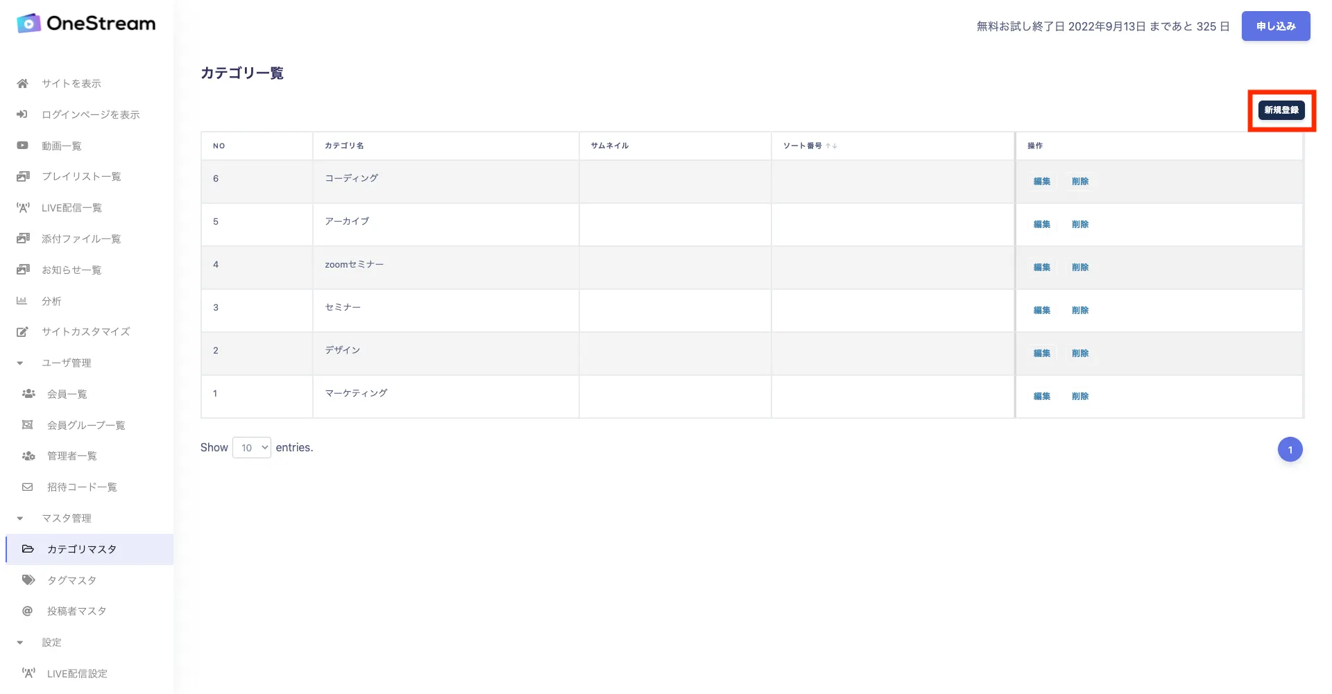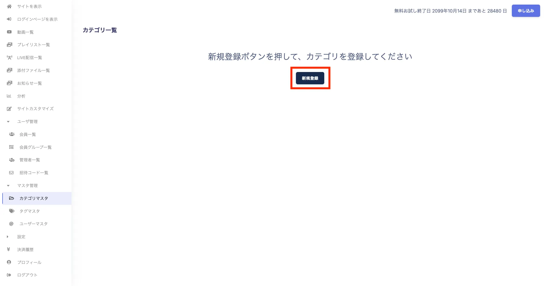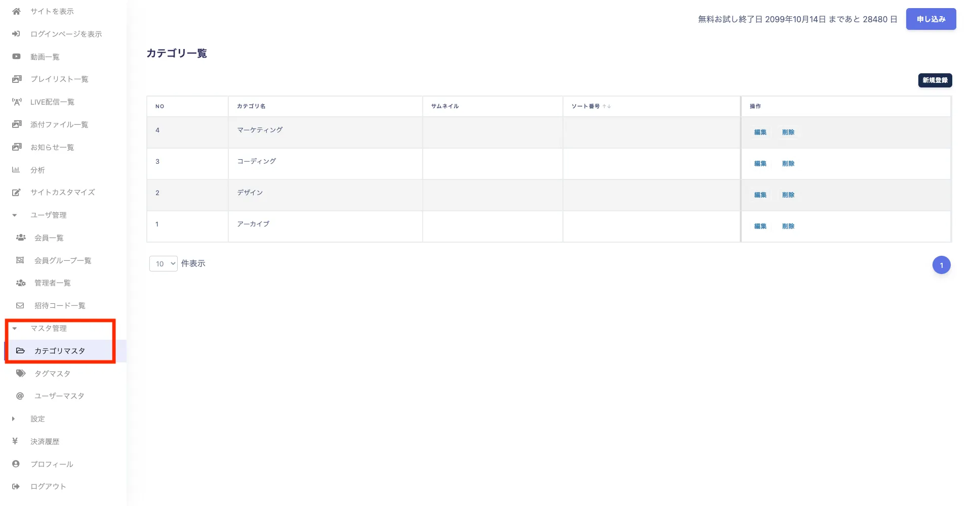 1. サイドメニューから「カテゴリマスタ」を選択します