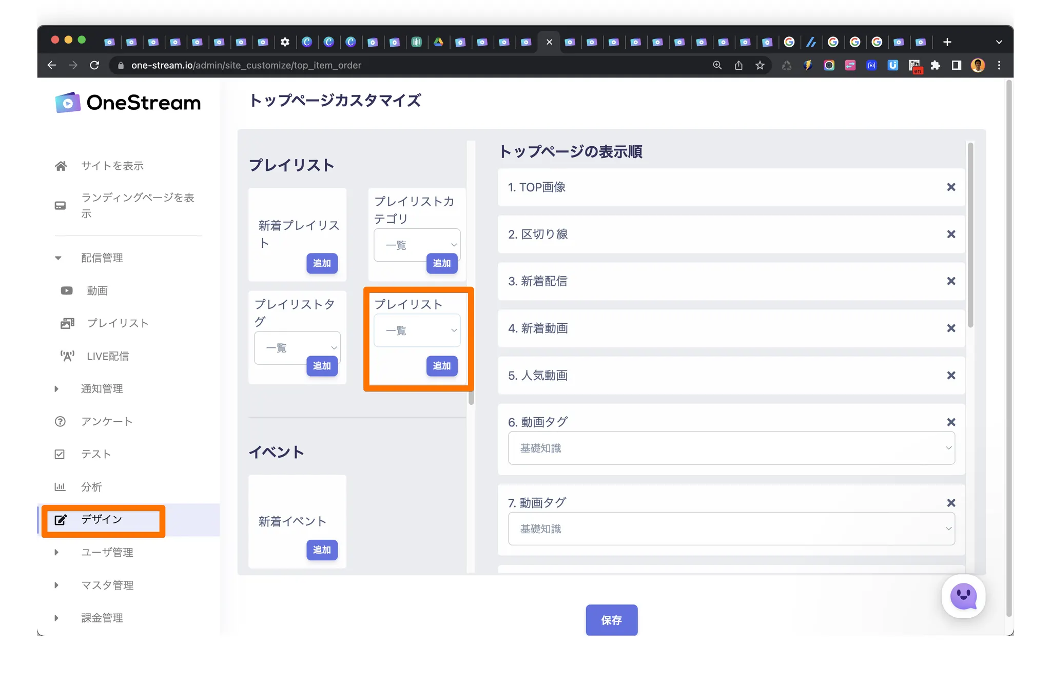 設定したプレイリストを、TOPページに展開して表示したい場合は