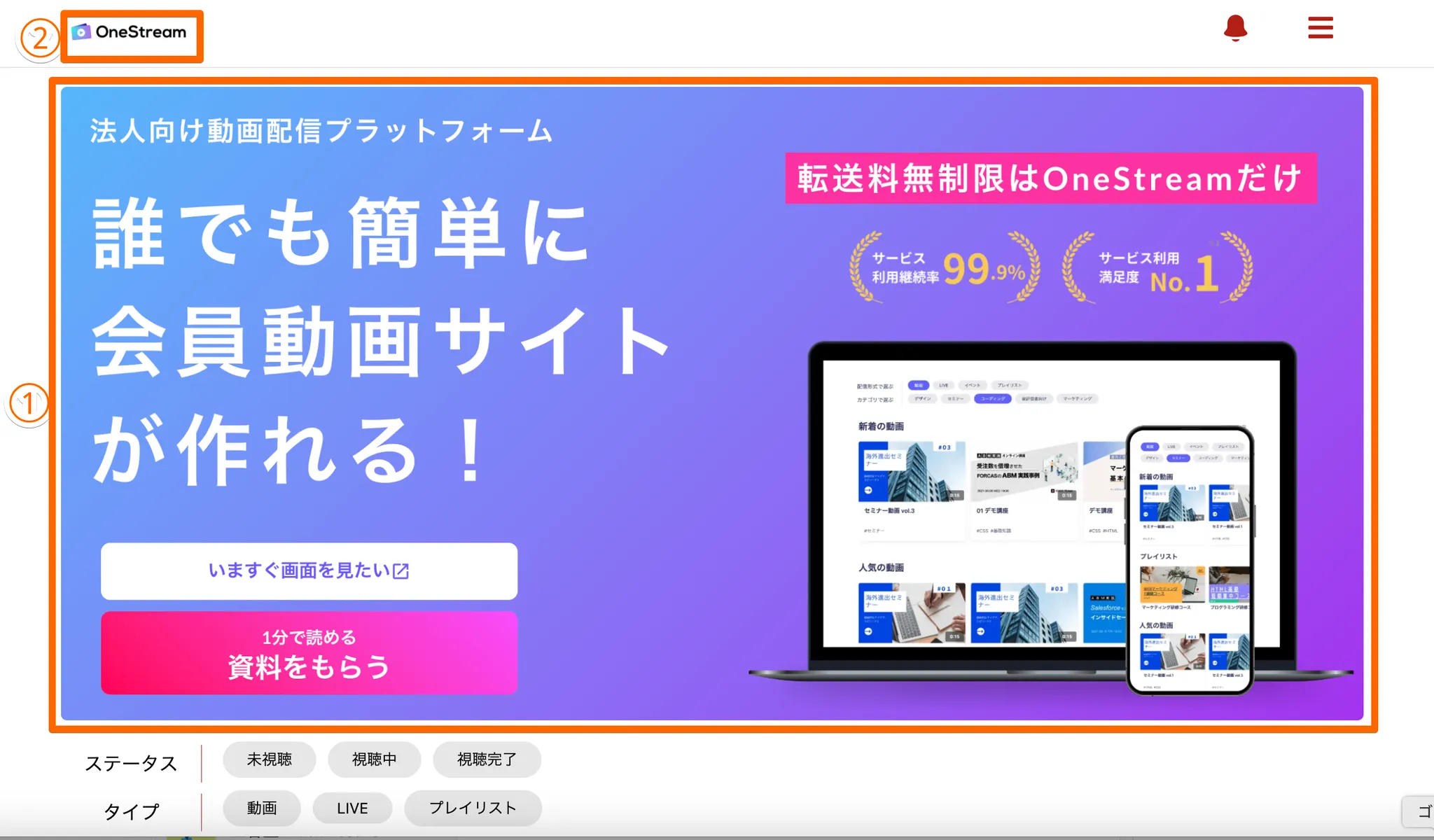 会員のTOPページに表示されるロゴやTOP画像を設定できます。(下記の赤枠部分です)