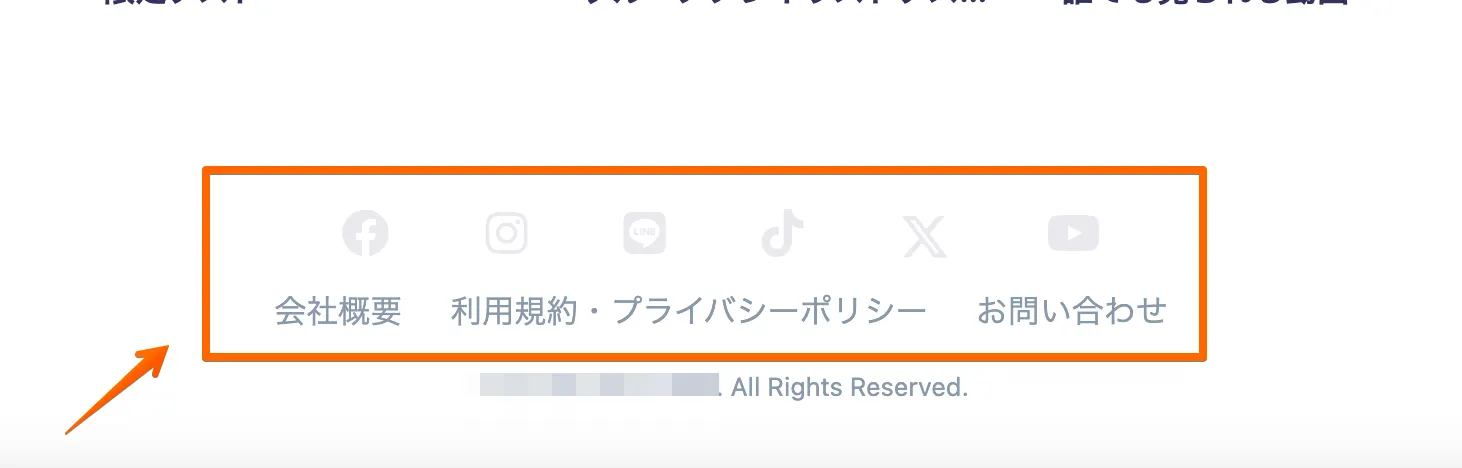 URLを設定すると会員サイトの下部(フッター部分)にURLを設定した項目が表示されます(下記参照)