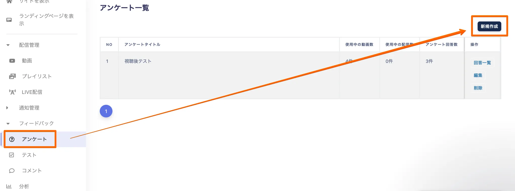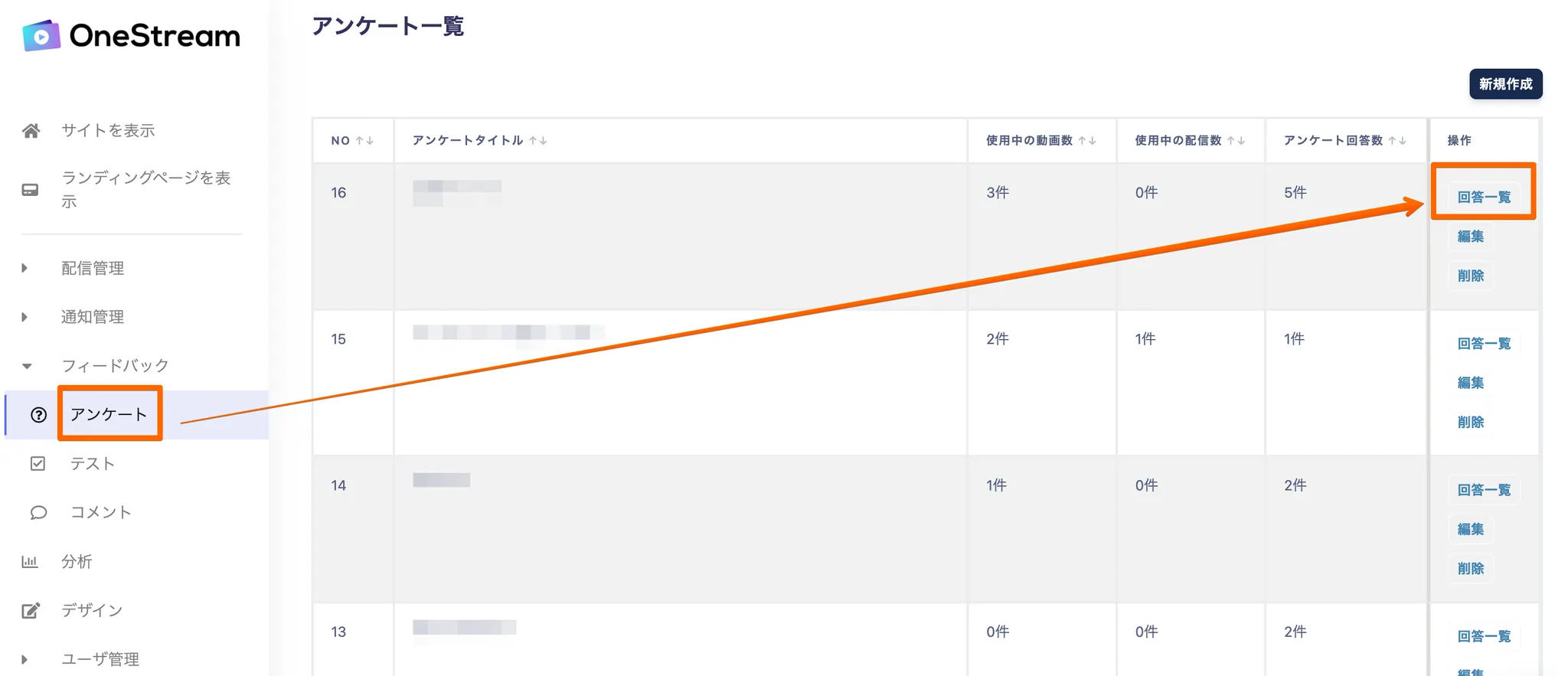 フィードバック→アンケート→新規作成